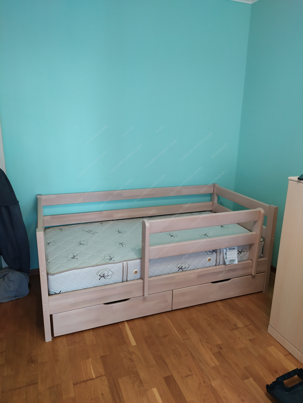 Цена кровати указана без учета ящиков и без матраса. Ящики на колесиках.