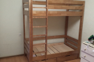 Кровать двухъярусная Великан подойдет для установки даже в комнате подростков. Это идеальный вариант для маленьких, узких помещений с ограниченным количеством свободного пространства. В таком случае вся выбранная мебель должна быть многофункциональной. Кровать оборудована выдвижными ящиками. В них допустимо хранить игрушки и другие вещи, например спальные принадлежности. Подобное избавит от необходимости дополнительно приобретать тумбу или комод. Лестница, как и вся конструкция, изготовлена профессионалами своего дела из натуральной древесины, поэтому выдержит большую нагрузку. Для повышения безопасности второй ярус оборудован специальным бортиком, предотвращающим падение ребенка во врем сна.